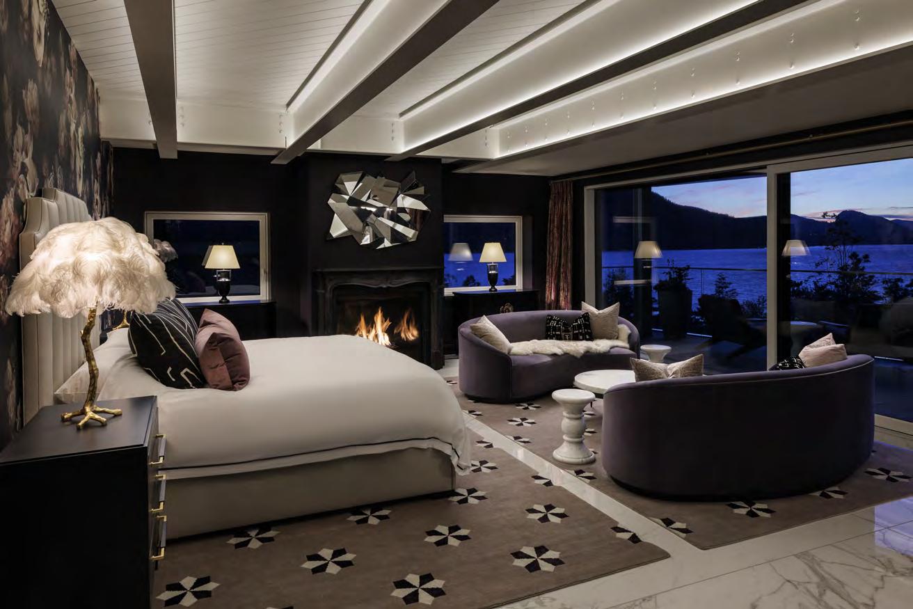 Notable features: Open steel beam and concrete construction, elevator, heated exterior concrete driveway and patios, EV chargers, automotive turntable and marble flooring in garage, extensive marble, Parisian-inspired wall mouldings, side-by-side soaking tubs in en suite, Gaggenau and La Cornue appliances, state-of-the-art Focal sound system, Christopher Boots lighting, custom wallpaper and wool rugs