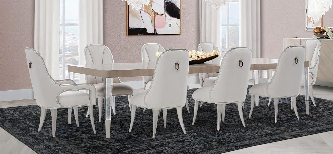 穿過右邊的主牆,眼前是一個明亮的白色廚房,有一個 10 呎多高 的定製可麗耐島臺和後擋板,集成水槽和櫥櫃相得益彰,呈現出 一種連貫的美感。一個整合的 Wolf 爐灶隨時可以為在旁邊調味廚 房準備的食物進行加工。