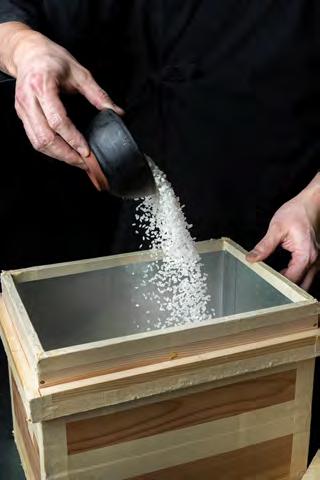 Chef Satoshi採用越光(Koshihikari)短梗米及Akazu赤酢來炮製酢飯。 赤酢是以酒粕釀製三至四年始成的粕酢,所謂一分錢一分貨,雖則比 其他赤酢價貴但風味殊佳,能增強海鮮的天然鮮味,味道稍重的赤酢 飯與魚脂較多的刺身更是完美配合 。