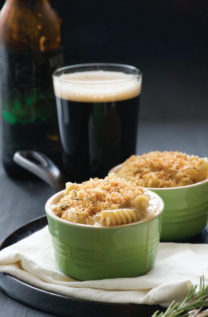 Dish up your creamy mac and cheese, and top with the crispy breadcrumbs. Serve with an icecold glass of Hoyne Dark Matter.