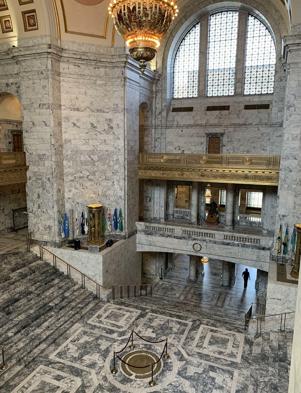 Daily public tours are given Monday-Friday at 10am, 11am, 12pm, 1pm, 2pm and 3 pm, and Saturday-Sunday at 11:30am, 12:30 pm, 1:30 pm and 2:30 pm. For groups of 10 or more, reserve space in advance by calling the State Capitol Tour Office at 360-902-8880. Advanced reservations are limited to 20 spaces per tour. For more information, call Visitor Service at 360-902-8880.