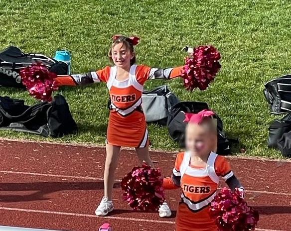 Left: Kelsy Lindgren’s daughter participates in competitive cheerleading, but the family has had to opt out of some opportunities due to huge travel costs. Photo courtesy Kelsy Lindgren.
