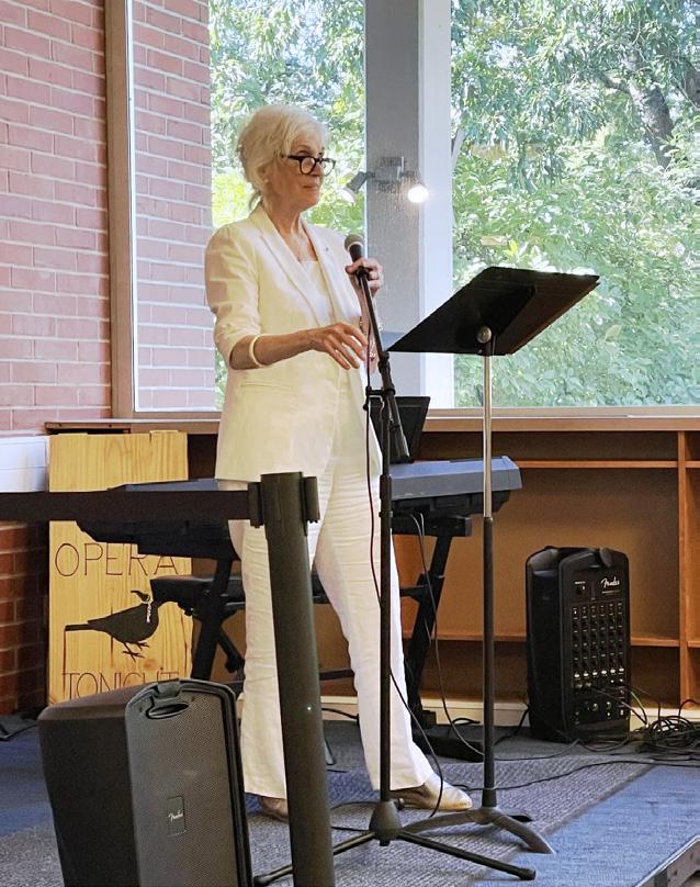 Page 13: Left: Clark County Poet Laureate Susan Dingle of Washougal speaks at a First Friday event in July 2024. Photo courtesy theARTScentered.