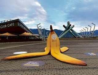 "Toremindyouthatmostinjuriesyou canseecoming,we'veputamassive bananapeelsculpturebytheOlympic Cauldron,"writesthenon profit organizationonTwitter "90percentof accidentsare100percentpreventable" BigBanana,theofficialnamefor the"sillysculpture"accordingto theorganization,wasondisplaythe afternoonofNov 2 Thisisn'tthefirsttimeabananapeelhas beenploppedaroundVancouver
