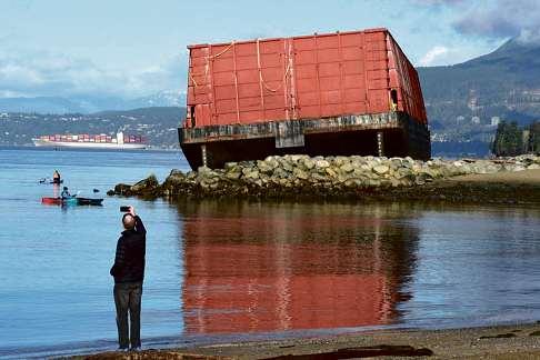 Alongwithflooding,wind damageandchaos,itbroughtan unlikely(albeittemporary)icontothese shores:theEnglishBayBarge Thegiganticbarge(akaSMT 5000) cameagroundduringhighwindsand anevenhighertideonNov 15,2021, becominglodgedonrocksatSunset