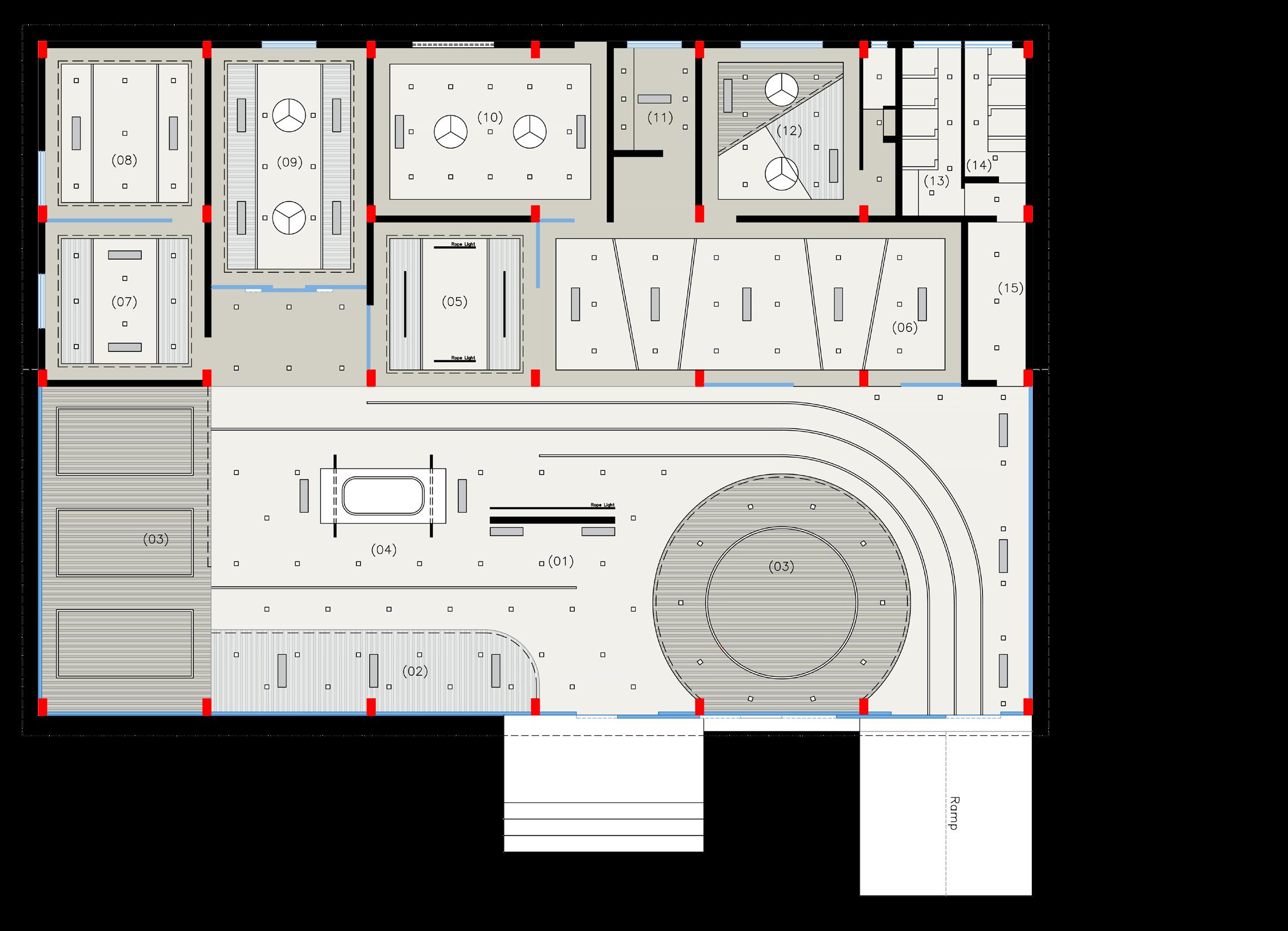 DOCTOR'S REST ROOM 4.80M x 6.46M MEETING HALL 7.00M x 12.27M DIRECTOR'S CABIN 4.80M x 6.46M STAFF ROOM 4.80M x 6.46M DOCTOR'S LOUNGE 7.63M x 6.46M STORE 2.60 M x 3.22 M TOILET O.P.D 04 5.00M x 3.89M TOILET COMMON TOILET [FEMALE] 4.80M x 3.22M TOILET O.P.D 02 5.00M x 3.89M TOILET COMMON TOILET [FEMALE] 4.80M x 3.22M 2.50M WIDE CORRIDOR