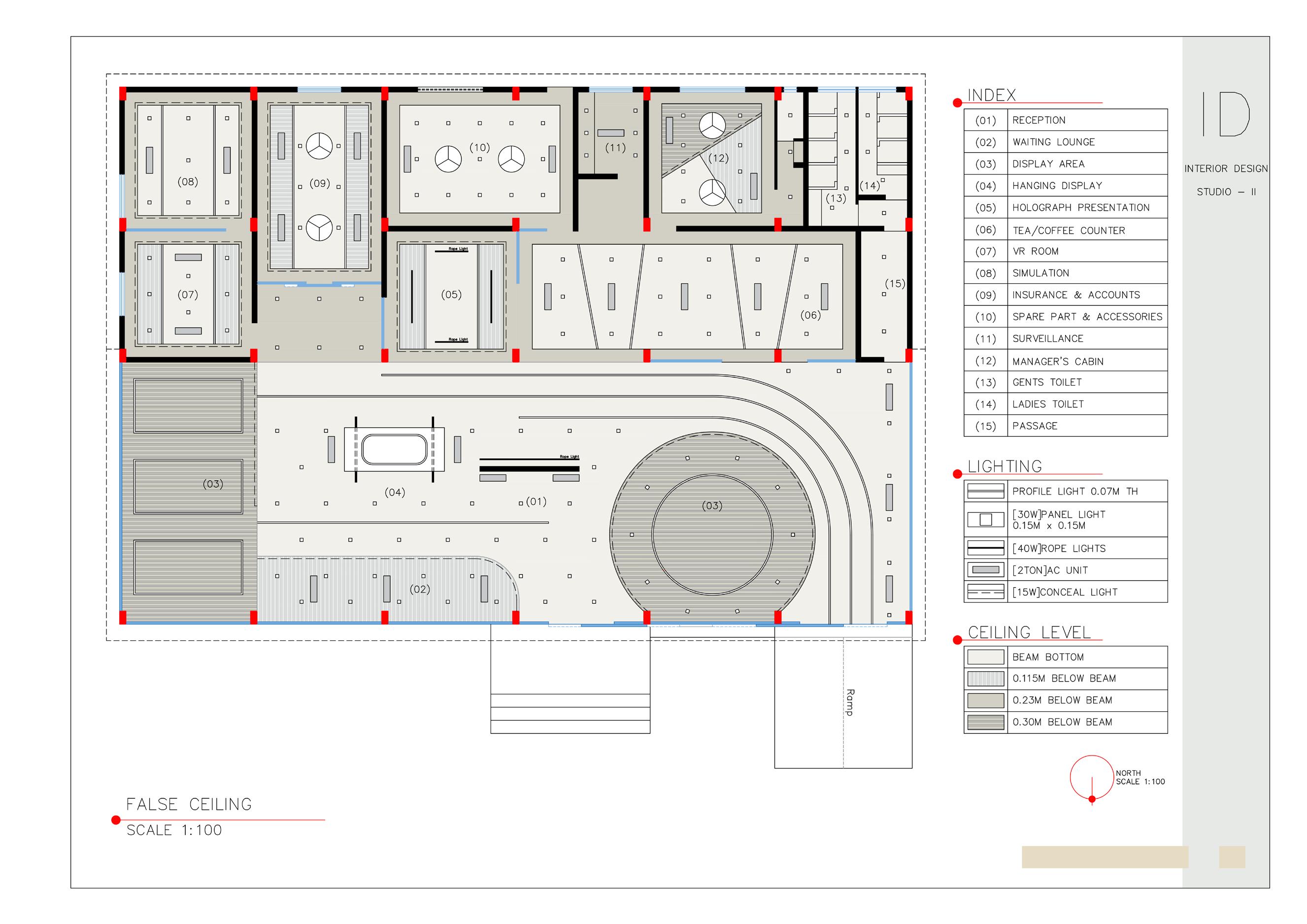 SCALE 1:100 7'-8 1 2 " 12'-2 1 2 " 1'-6" 1'-6" 1'-6" 1'-6" 1'-6" 1'-6" 1'-6" 1'-6" 2" x 3" MS PIPES WELDED ACROSS JUNCTIONS 3" x 3" MS PIPES MAIN SUPPORTS SB11 + 3'0" 2' PT. ABOVE SHUTTER 2'-5 1 2 " 2'-5 1 2 " 02 SB11 6M 2SUSPENDED LIGHTS IN SERIES, 1 CHARGING POINT, 3 SURFACE LIGHT [5] 5'-11 1 2 " 5'-11 1 2 " 7'-9" 9' INDOOR CEILING 2" x 3" MS PIPES WELDED ACROSS JUNCTIONS 6" 8' 6" 6" 6'-9" 6" EQ EQ EQ EQ 3'-10 1 2 " 3'-10 1 2 " 2'-6 1 2 " 3'-11" 5'-5 1 2 " 7'-9" 1' 6" 9" LED 6" 6'-9" 6" 7'-9" 1'-8 1 2 " 2' 3' 1' 4' 3' 2'-6" VANDANA