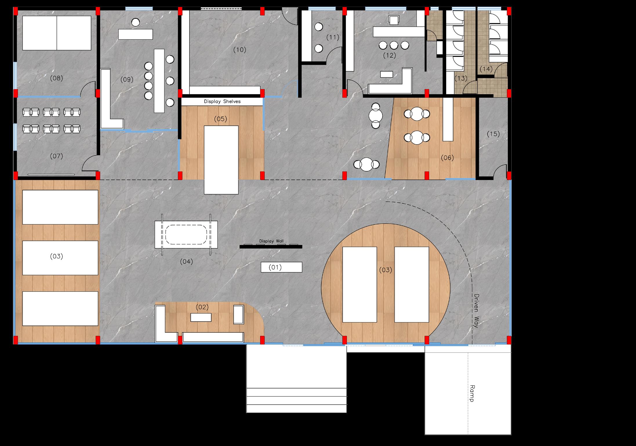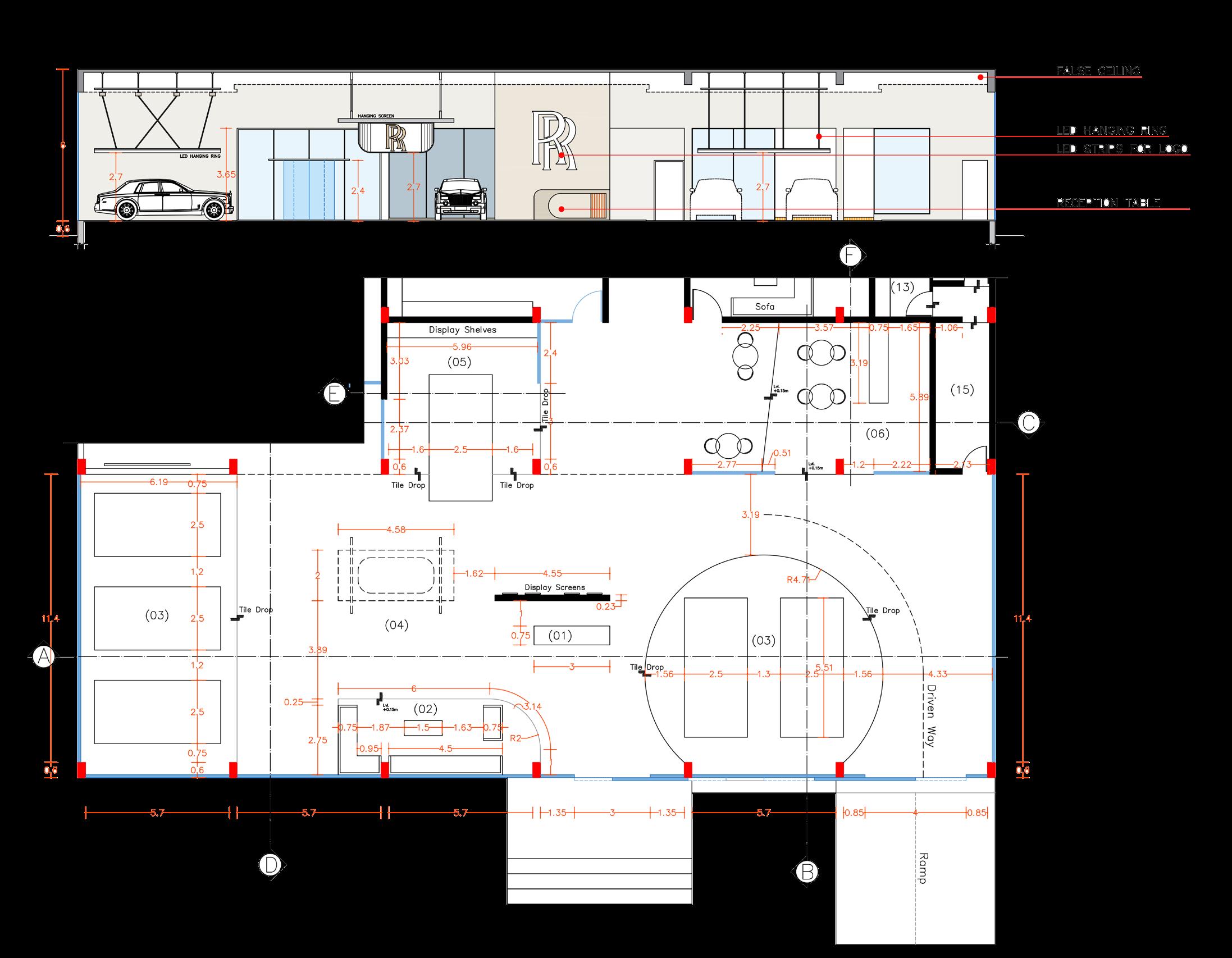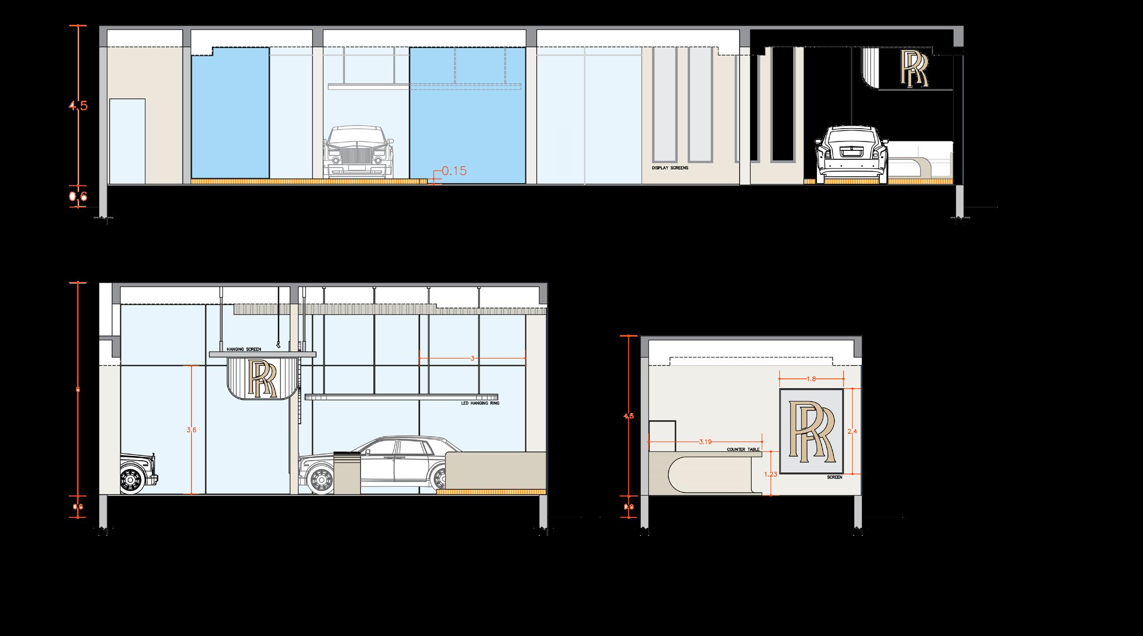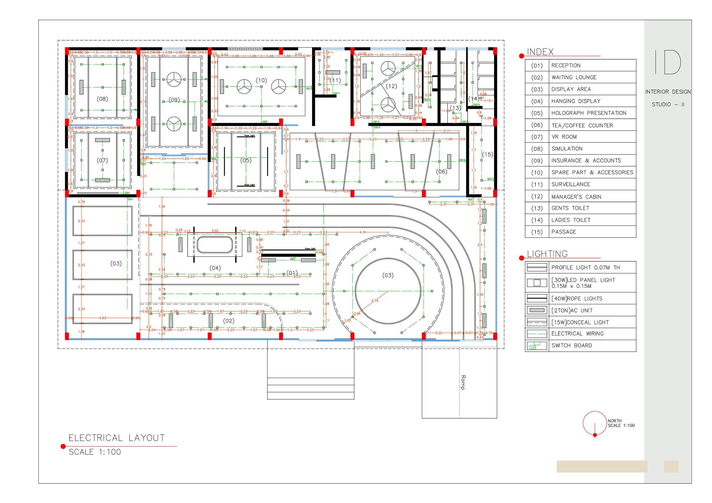 OUT SIDE POINTS : [ 4 SUSPENDED LIGHTS IN SERIES, 2NEON IN SERIES, 3 SURFACE IN SERIES, LOGO AND BOARD ] [4] INSIDE POINTS : [ 4 SUSPENDED LIGHTS IN SERIES, 4 LED IN SERIES, WALL MOUNTED FAN, ACRYLIC ABOVE SHUTTER ] [4] 02 SB2 3M 1 CHARGING POINT [3] 03 SB3 3M [16A] REFRIGERATOR [3]