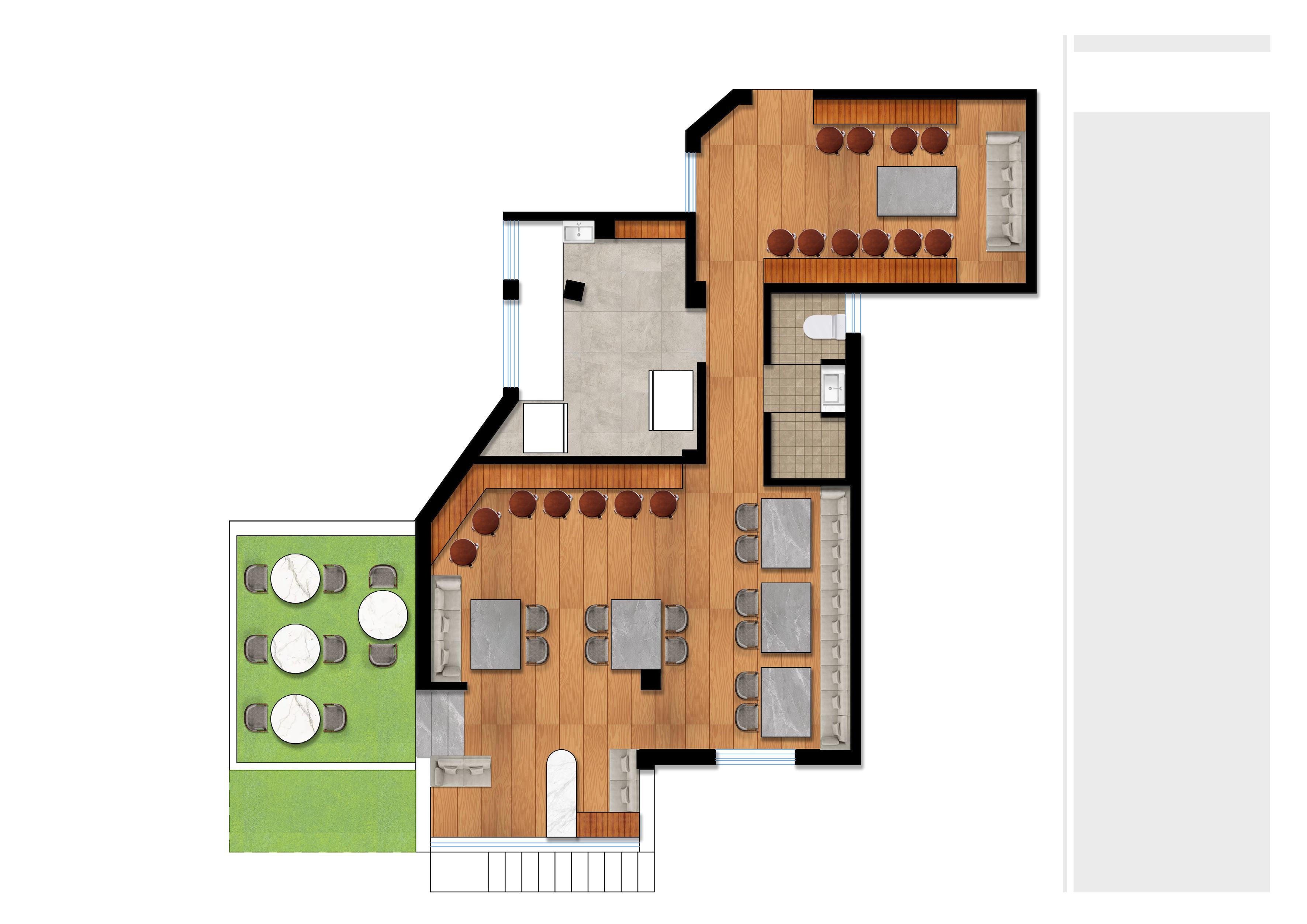 KITCHEN 11'11" x 10'2" INDOOR SITING 11'11" x 7'9" OUTDOOR SITING 12'4.5" x 10'11.5" 24" OTTA 21" COUNTER TABLE 24" OTTA ESPRESSO COMPUTER 30" GROUND FLOOR PLAN SCALE 1:100 19'-5 1 2 " 12'-4 1 2 " 10'-2" SB 5 + 3'0" STOVE SB 6 + 3'0" OVEN SB 7 + 3'0" GRILLER SB 9 + 3'0" TABLE PT. SB 4 + 1'6" SB3 + 3'0" SB 2 + 3'6" 3' 3' 3' 3' 5'-1" 5'-1" 3'-6" 2'-6" 3' 1'-3" FAN 5'6" 3' 3' 3' 3' 1' 3'-6" 4'-6" 1'-3 1 2 " SB1 + 5'0" 9" SB 8 + 3'0" MIXER 3' ELECTRICAL