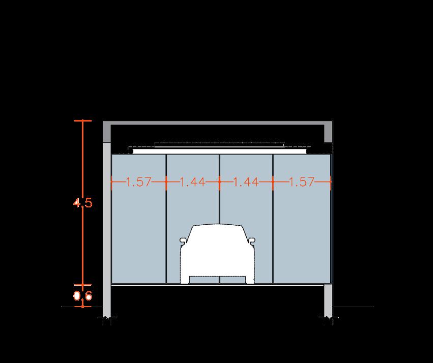 UPTO 3'0" ACP SHEETS TIN SHEETING PLAN SCALE 1:100 7'-8 1 2 " 1 2 " 1'-6" 1'-6" 1'-6" 1'-6" 3" x 3" MS PIPES MAIN SUPPORTS SB10 + 3'0" 3'-6"