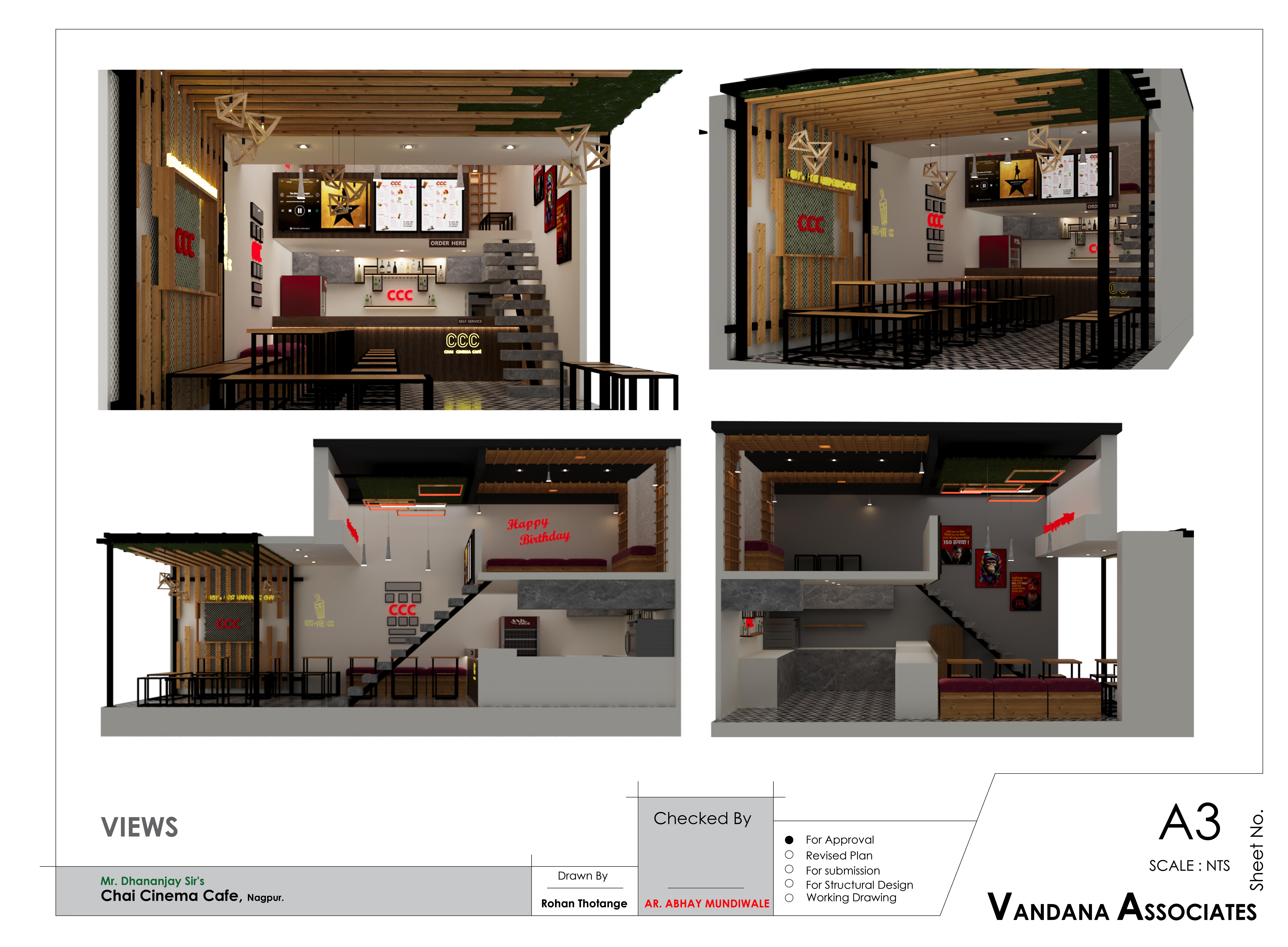 IN MDF SHEET PLAN ELEVATION 2' VANDANA ASSOCIATES A3 Sheet No. For Approval Checked By Revised Plan For submission For Structural Design Working Drawing Chai Cinema