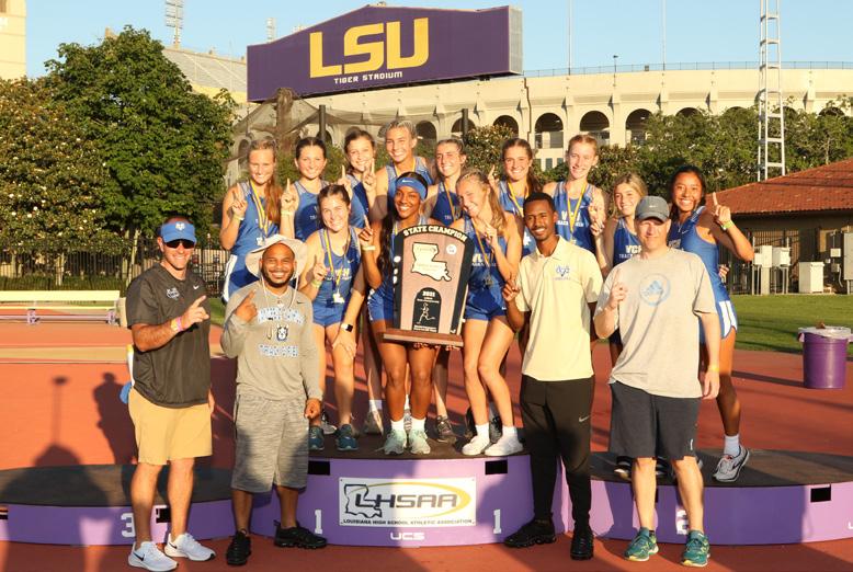 Both the girls cross country and the girls track and field programs have seen a great deal of success over the past five (or so) years. In November 2022, the girls cross country team won its fifth consecutive state championship, bringing their earnings to six championship titles in seven years. They have also secured numerous regional, district, and parish championships since 2018. The girls track and field team has seen similar success, earning the school’s first ever state championship in 2019, followed by two more consecutive championships in 2021 and 2022. They, too, have recently earned numerous championship titles at the regional, district, and parish levels.