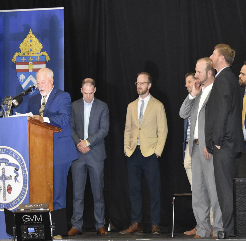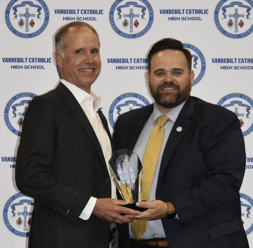 On Friday, June 3, 2022, Vandebilt Catholic High School hosted the second annual President’s Banquet in the Kolb center on campus. During the evening, Jeremy Gueldner, VCHS President, presented awards for President’s Distinguished Service and Hall of Fame. Doug Hamilton, VCHS Director of Advancement and Alumni presented the award for Alumni of the Year. Guests included VCHS administration and faculty, diocesan officials, Brothers of the Sacred Heart leaders, family, friends, supporters, and past Alumni of the Year and past Hall of Fame inductees.