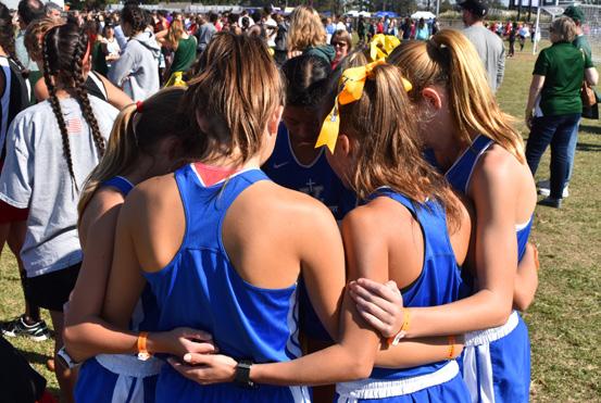 Cross country running can be seen as both an individual and team sport since runners compete for individual times and teams by a points-scoring method. Typically, the top five finishers from each team are used for scoring and their finishing places are totaled to determine a winner. The lowest score wins. The success Vandebilt Catholic runners have seen over the years is definitely accredited to the team approach with an amazing group of strong girls who push each other for those top finishes at every race.