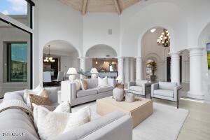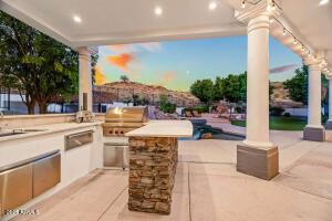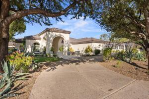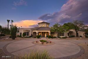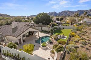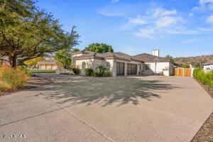 Over an Acre with Unmatched Mountain Views This stunning single story home sits on 1.15 acres, backing directly to a mountain with breathtaking views that greet you the moment you walk through the front door. Soaring ceilings ranging from 10 to 16 feet throughout the home are complemented by exceptional architectural details domed wood cupola ceilings with exposed beams and high transom windows flood the space with natural light, thanks to the 360 days of sunshine Ahwatukee is known for. The resort-style backyard is a true oasis, featuring a heated pool and spa, lush luxury turf, putting-green, elevated gas fire pit, and true outdoor living provided at the ramada, gas fireplace and cooking facilities to take full advantage of the mountain backdrop and total privacy. Inside, the open floor plan centers around a chefās kitchen with oversized island, Sub-Zero and Thermador stainless appliances, walk-in pantry with custom barn doors, double ovens, and panoramic mountain views. The home also offers a formal dining room, breakfast nook, front living room with a full sit-up wet bar & beverage cooler, and a spacious family room/den_all oriented to showcase the stunning landscape. The primary suite provides private access to the backyard retreat and is split. Custom Office cabinets for bonus or 5th bedroom off foyer. Split 4th bedroom has bathroom access to pool and near laundry and garage entry, perfect for Nanny, In-law, Guest or Adult child. Curb appeal is unmatched with a circular driveway, a side-entry 3-car garage, and ample guest parking.