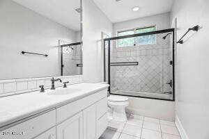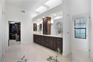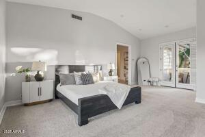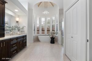 Subject 3621 E. Coconino, Ahwatukee ⢠Primary Bedroom: Private commode, separate shower OUTSIDE DOOR to Resort Yard, Sitting Area. Exterior door in Primary bathroom to private walled courtyard for ease of letting pets out in mornings/evenings or creating sanctuary visible from tub