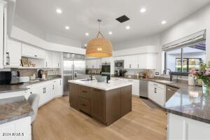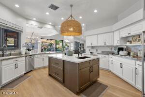 āŖ Full 300k kitchen remodel 2022; Outdoor Cantilever Canopy with sunshade and sunshades on rear Ramada over 20k. Replaced sod with turf and added putting-green with 10-year warranty in 2021 at a cost of 18k; Full roof replacement with 7-15 year warranties and lifetime on tile underlayment and roof tiles convey; New front door Iron Works over 7k in 2021; Window Treatments & shutters with motorized roller shades in living areas 30k in 2019; New carpet in bedrooms and office 2018; new pool pump/heater 2018; New pavers, ramada, outdoor kitchen, pergola installed 2019 over 62k; Pool resurfaced and play shelf added over 14k in 2019; New Trane A/C Units 2020; All bathrooms have been fully updated including toilets, faucets, sinks, showers/tubs, vanity, etc. with Zero entry shower in Primary; New hard stone flooring throughout all living areas and primary bed and bath; new floor-to-ceiling windows living room; New windows Dining room. Exquisitely maintained and freshly updated, this home offers