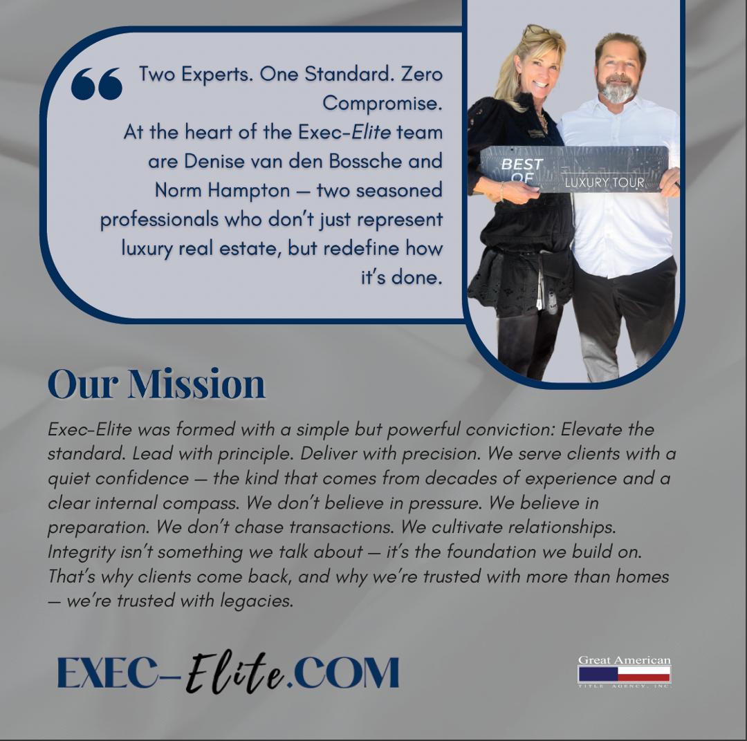 Exec-Elite was formed with a simple but powerful conviction: Elevate the standard. Lead with principle. Deliver with precision.
