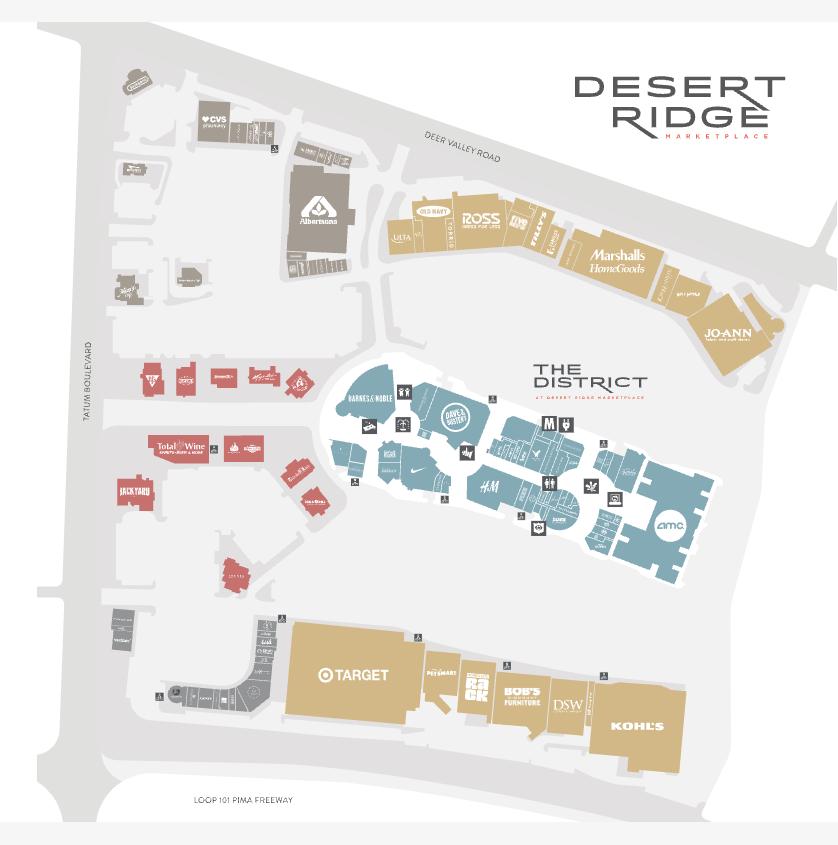 • Desert Ridge provides abundant parks, greenbelt, walking paths, mountain views and numerous schools, shops, dining and entertaining. The outdoor shopping district at the Marketplace and High Street offer over 100 stores, restaurants and activities.