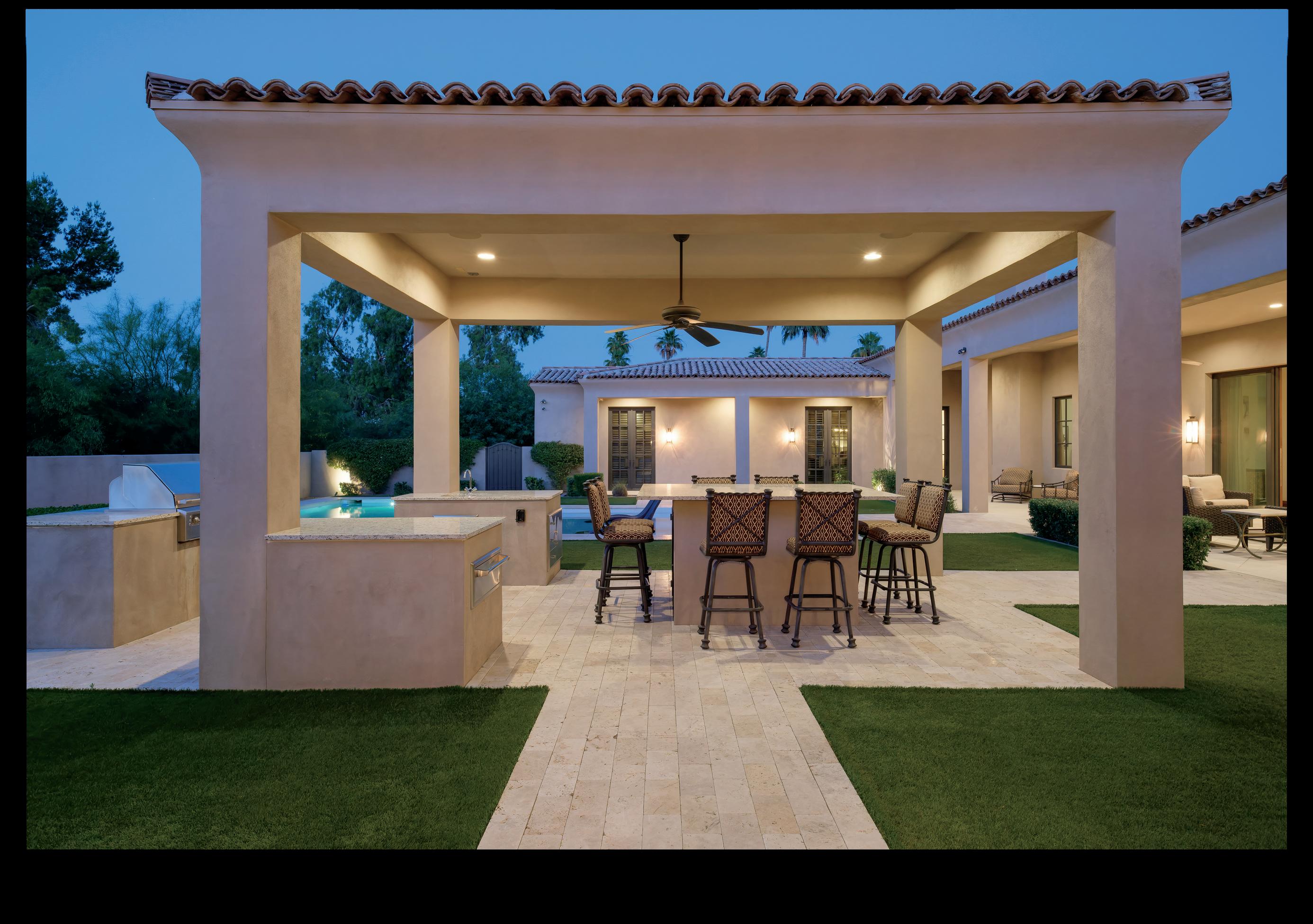 OutdoorKitchenwith oversizedgranite sit-upisland,wired forAV, TVand SoundSystem CofferedCeilings, BaldwinLocksets, OversizedDoors, AttentiontoDetail Throughout