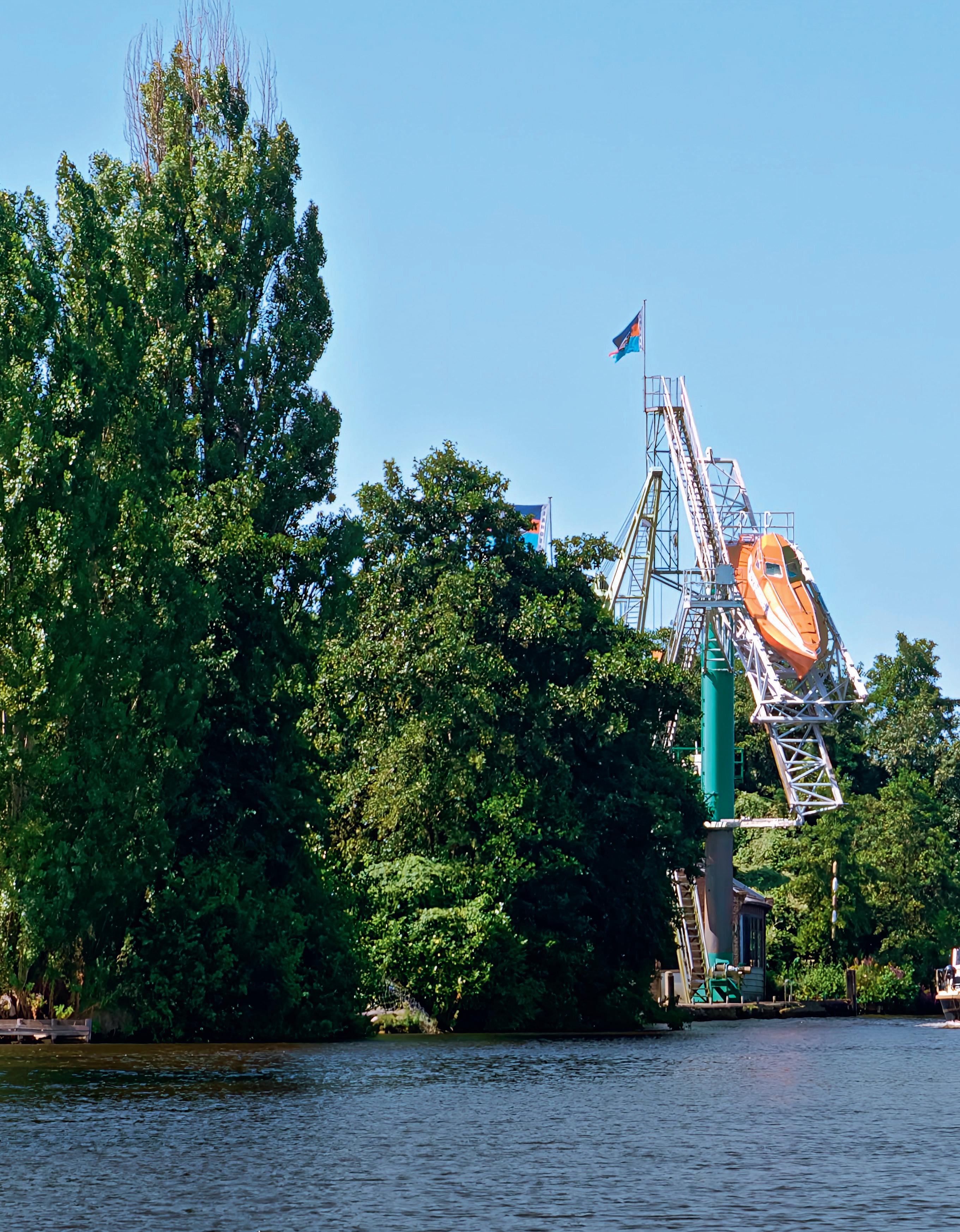 Langs de Ringvaart van de Haarlemmermeerpolder ligt in Aalsmeer de showroom van een bedrijf dat in freefall lifeboats handelt. Hoewel de rail waarop deze boot klaarligt enigszins aan een pretpark doet denken, is het doel ervan uitermate serieus. Meestal zit zo’n rail achter op een zeeschip en is bedoeld om de freefall lifeboat letterlijk – onder eenhoek–naarhetwatertelanceren.