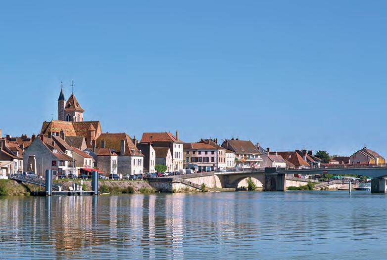 geglazuurde daken van de kerktorens op; je ziet ze overal, en ze zien er heel aantrekkelijk uit. Onderweg is bij het plaatsje Marnay een prehistorische nederzetting opgegraven. De archeologen vonden er de roue d’Ouroux: een 3000 jaar oude voorloper van de ets. Er is vanaf het water niets van te zien, maar er ligt wel een fraaie gîte naast.