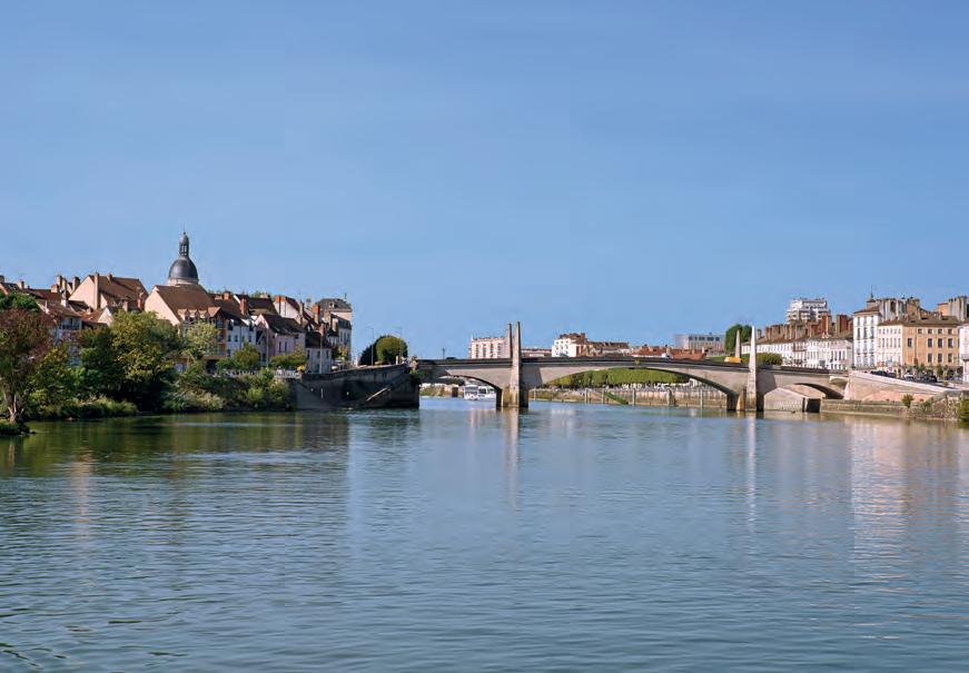 natuur. Bij de plaats Gergy kijken we met meer dan gemiddelde belangstelling naar de Pont Boucicaut. Daarna varen we verder tot we het punt bereiken waar de Doubs in de Saône uitmondt. Hier gaan we stuurboord uit de Doubs op en varen een paar honderd meter naar het plaatsje Verdun-sur-le-Doubs.