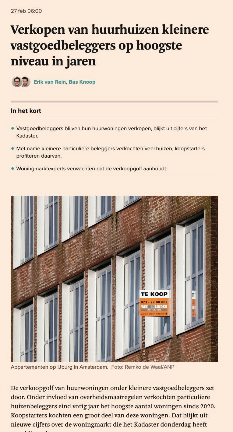 Wel wordt het hoog tijd dat het nieuwe Haagsche kabinet oog krijgt voor wat er gaande is op de vastgoedmarkt en dat er een helder, voorspelbaar beleid en een aantrekkelijk investeringsklimaat benodigd is om de ambitieuze woningdoelstellingen te gaan realiseren.”