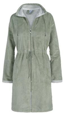 Deze korte, soepelvallende badjas is nu ook verkrijgbaar in de nieuwe kleur Salie