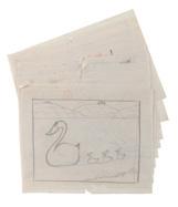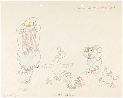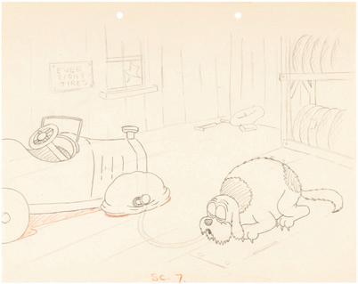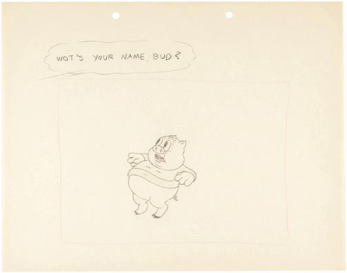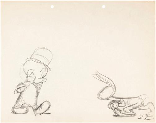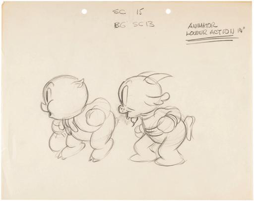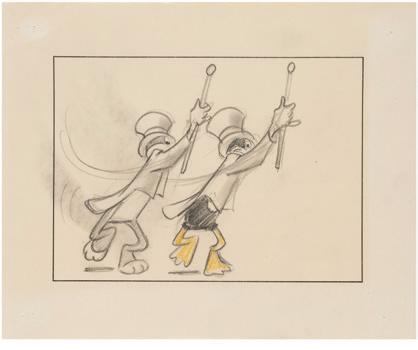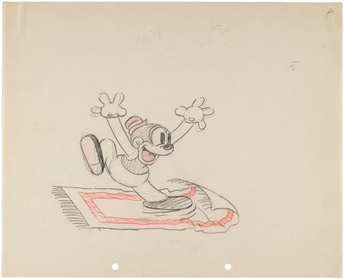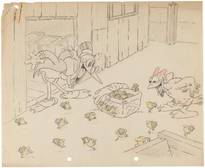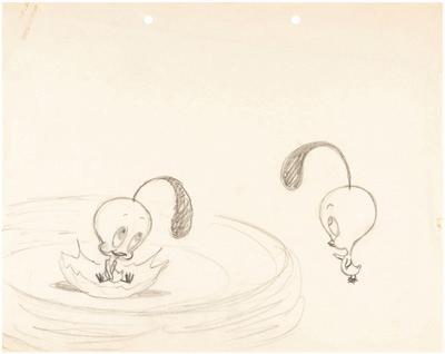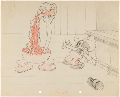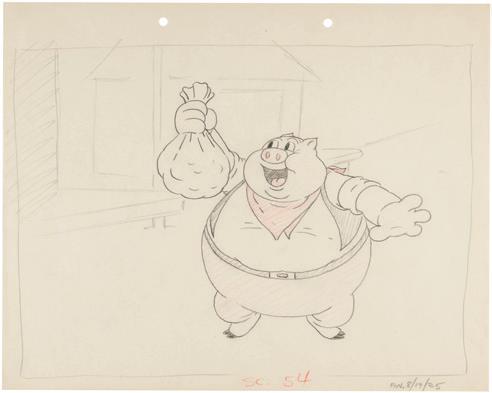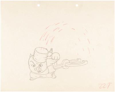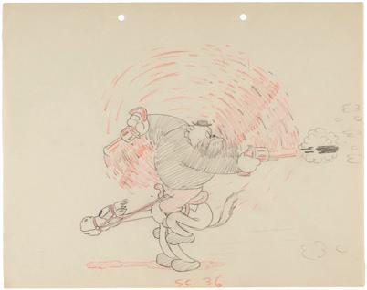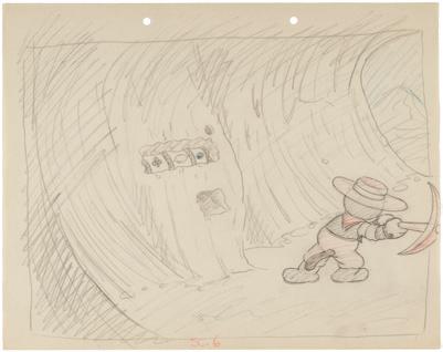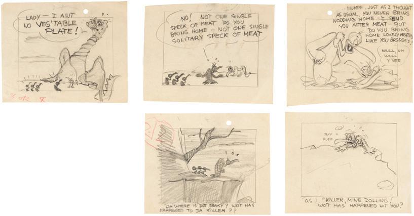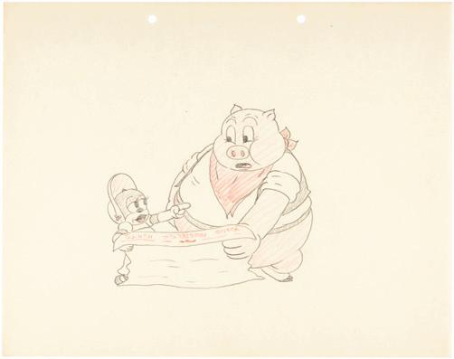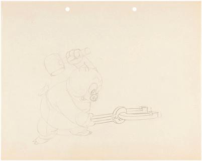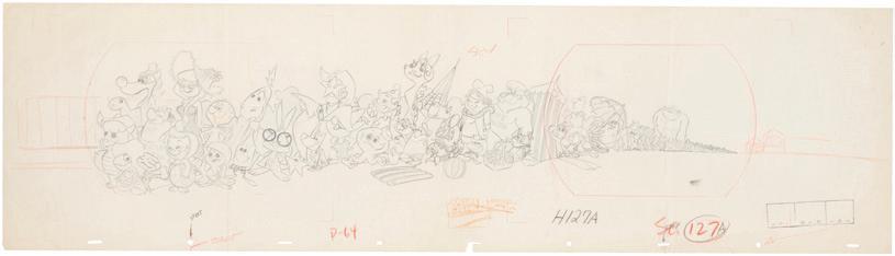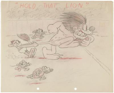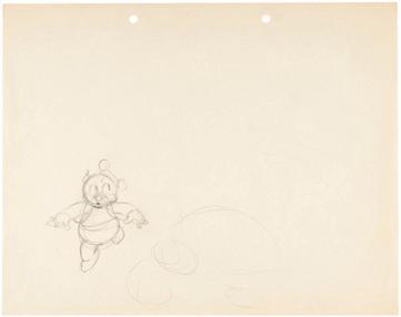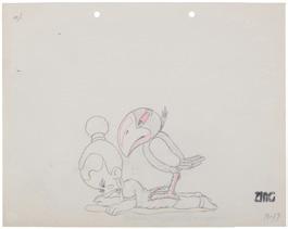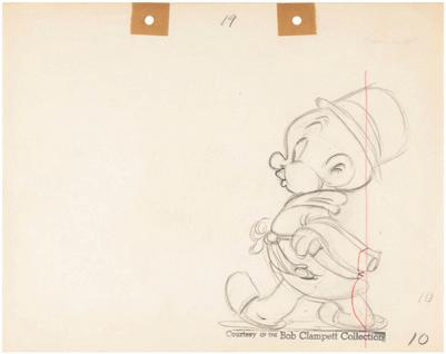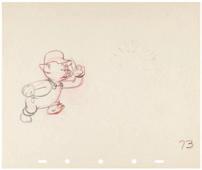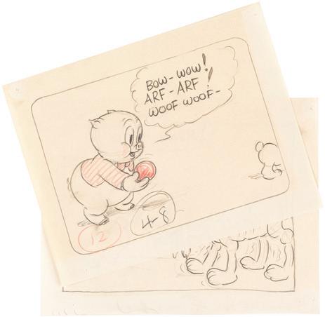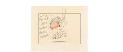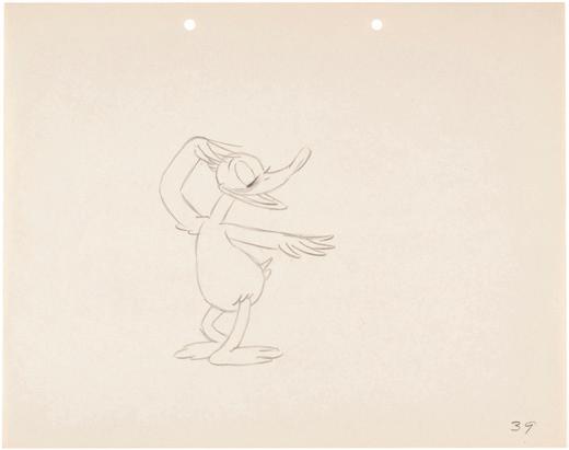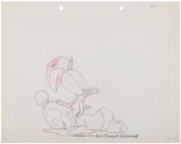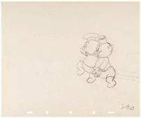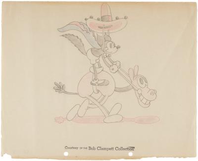 13. An Original Gertie the Dinosaur Production Drawing. (McCay, 1914) Although Bob Clampett was only a year old when Winsor McCay’s “Gertie the Dinosaur” came to life, its impact on generations of animators including Clampett cannot be understated. Created by McCay in 1914 and integrated into his Vaudeville act and later released as a silent film, it is considered the first animated cartoon to feature a set character with a defined personality. The film was a commercial success and made Gertie a cultural icon of the time. It demonstrated that animation could entertain and engage audiences beyond simple novelty, paving the way for animation as a legitimate art form and encouraging other studios to produce animated shorts. The success of “Gertie the Dinosaur” encouraged experimentation and innovation in animation techniques, sparking the development of the industry as we know it today. Each drawing of the production was drawn on rice paper with the background inked onto each piece and Gertie animated into the scene. The drawings were then mounted on board and photographed one at a time to create the short.
