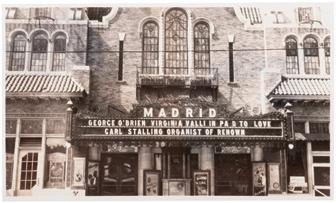 26. A Madrid Theatre Marquee Photo. (Stalling, 1927) A photo of the Kansas City Madrid Theatre with the marquee billing “Carl Stalling- Organist of Renown.” This photo was taken shortly before Stalling was hired by Disney and moved to California. The 5.5” x 3” photo is in good condition with wear from age and residue on the reverse from being mounted in a scrapbook. $100 - $200