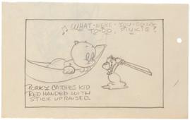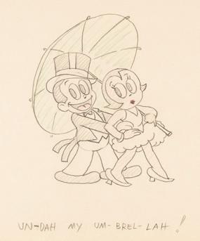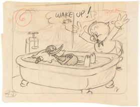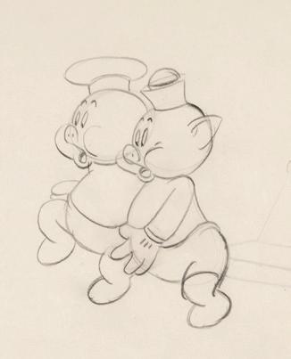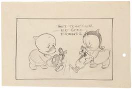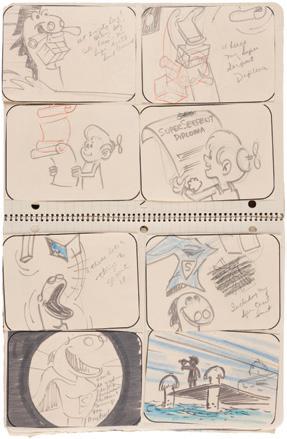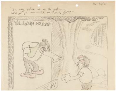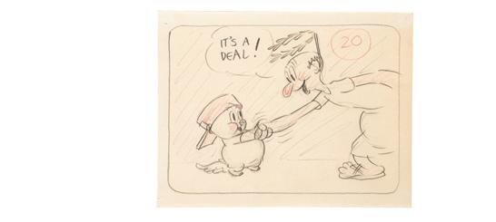 12. “Deep Sea Doings” 1930 Original Clampett Comic. (Clampett, 1930) This original comic was created by Clampett at age seventeen during his senior year of High School. It is clear that his style has begun to change as he is influenced by early animation and a new breed of comic artists. Measuring 14.5”x10”, the artwork is in very good condition with only light wear from age. The reverse features an unfinished boxing themed drawing. Clampett was a sports and boxing fan all his life and many of his drawings feature sport themes. $800 - $1,000