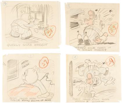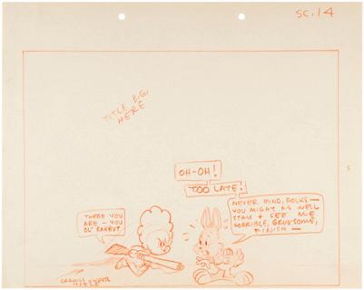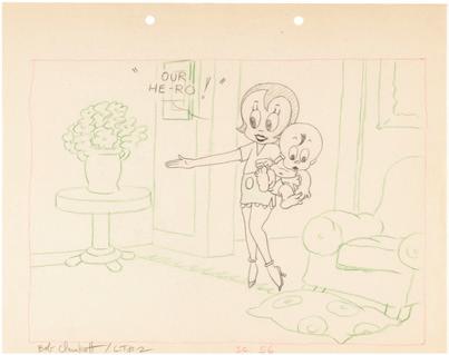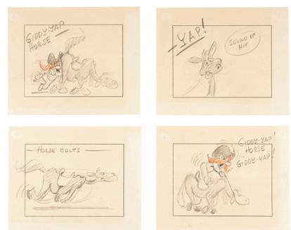 Many of the items in these presentations – the story panels, cels, and more - are the equal to other individual lots in this auction, even superior as they were chosen by Clampett to represent the high points of his career. This is an amazing and sweeping collection of animation history, and a very personal item special to the animation legend Bob Clampett himself. $3,000 - $5,000