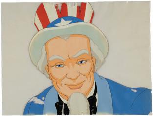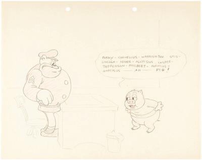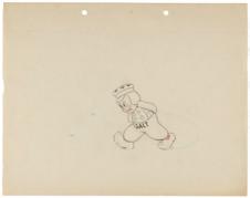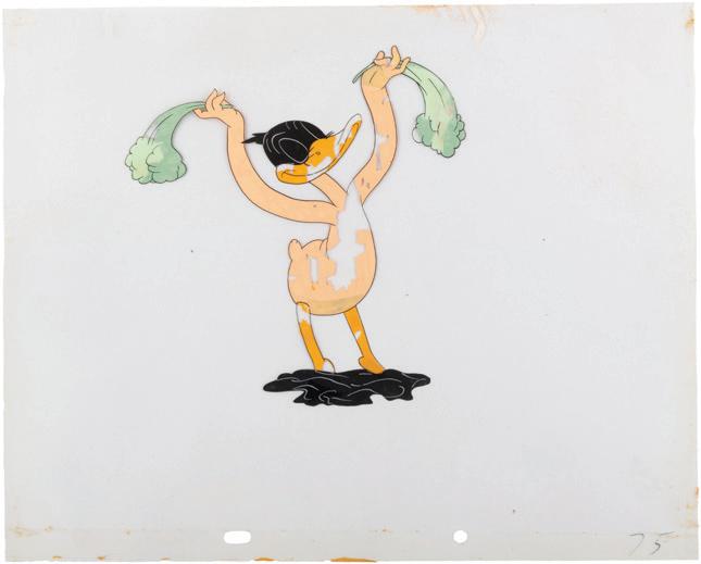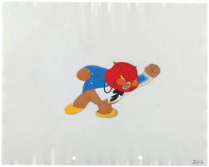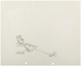 An original hand-painted cel of Pop’s Pop with a Bob Clampett copyright. Measuring 10.5” x 12.5” with a character image size of 7.5” x 8”, the piece displays in very good condition with light line loss, paint loss, scratches, and edge wear from presentation use. $100 - $200