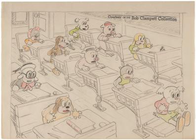As a budding artist, Clampett was significantly influenced by the comedic stars of his time, along with actors, comedians, newspaper cartoonists, and popular political cartoonists from that era. Absorbing newspaper comics, books, and other varied forms of entertainment would prove invaluable as he developed his own style of art and humor. In his personal collection, Clampett kept many of the early books and artwork that shaped him into the artist and animation director that he would become.