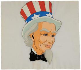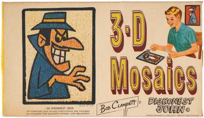 934. A Dishonest John Poolside Bar Display. (Clampett, 1960s) A handmade wooden cut-out of Dishonest John from “Beany and Cecil,” that decorated Bob Clampett’s backyard poolside bar. Measuring 30.5” x 30.5” x 0.25” thick, the display is in fair condition with edge wear, peeling, scratches, cracks, soiling, and light discoloration from age. Due to size and weight, this item requires special shipping arrangements. Please inquire before bidding. $300 - $500