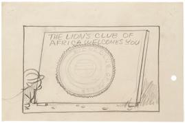 935. A Poolside Tear-A-Long the Dotted Lion Display. (Clampett, 1960s) A handmade wooden cut-out of Tear-A-Long the Dotted Lion from “Beany and Cecil,” that decorated Bob Clampett’s backyard poolside area. Measuring 47.5” x 37.25” x 0.25”, the cut-out displays in good condition with a broken tail, light soiling, light edge wear, and light discoloration from age. Due to size and weight, this item requires special shipping arrangements. Please inquire before bidding. $300 - $500