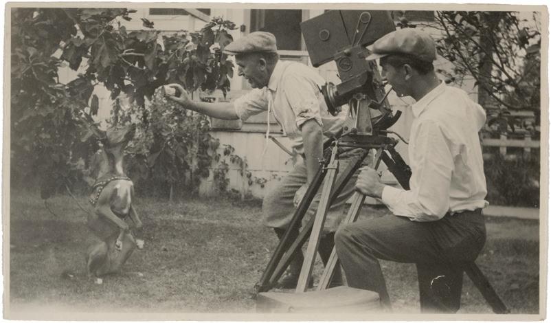 The 4” x 2.5” photo came from the estate of Carl Stalling and features Disney filming Robert’s dog in the yard of his Uncle’s House at 4406 Kingswell Ave in Los Angeles. The photo is in good condition with some paper residue on the back from a previous mounting in a scrapbook. $1,000 - $2,000