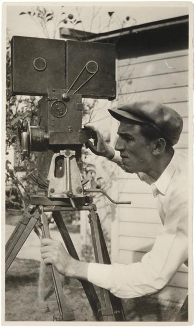 31. A Photo of Roy Disney with His Camera. (Disney, 1923) An extremely rare early photo of Roy Disney. The 2.5” x 4” photo came from the estate of Carl Stalling and features Disney in the yard of his Uncle’s House at 4406 Kingswell Ave in Los Angeles with the Pathe’ Motion Picture Camera he and his brother Walt purchased to start their studio. The photo is in good condition with some paper residue on the back from a previous mounting in a scrapbook. $1,000 - $2,000