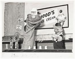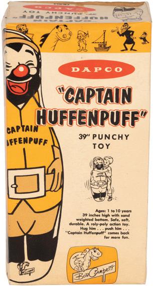 925. A “Beany and Cecil” Video Store Store Display. (RCA/ Columbia, 1984) A “Beany and Cecil” motorized and talking video store display promoting the 1984 release of “Beany and Cecil” on VHS and Betamax. With a battery-operated motor and voice box, the Leakin’ Lena was designed to rock back and forth while Cecil emerges from the waves to present a sales pitch for the series. Both the motor and voice box have been tested, and only the voice box is operational with a C-cell battery (not included). Measuring 17.5” x 20” x 5” deep, the display is in good condition with water stains along the bottom, color shift from sun exposure, and edge wear from store use. $100 - $200