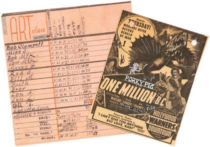 9. Bob Clampett’s 1928 High School Yearbook. (Clampett, 1928) Bob Clampett’s personal copy of his 1928 Glendale Union High School Yearbook. As a sophomore, Clampett’s artistic talents began to be noticed, and several pages of his artwork appear in the book, including an original drawing of a student on the front page signed by Clampett. Measuring 10.75” x 8”, the book is in very good condition with expected wear from age. $200 - $400