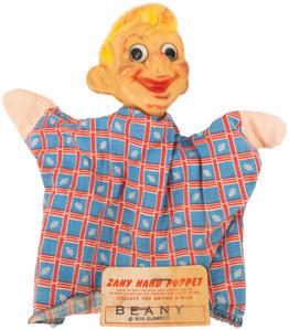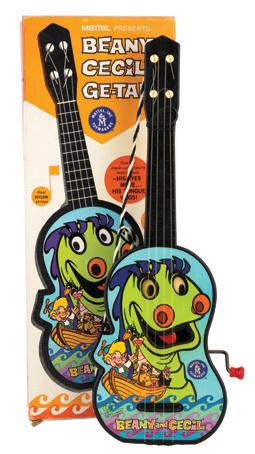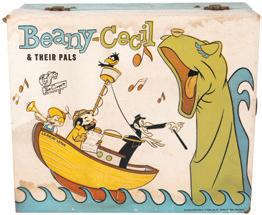 979. A “Beany and Cecil” Home Video Release Display. (RCA/ Columbia, 1984) A motorized talking “Beany and Cecil” video store display promoting the 1984 VHS and Betamax release. With a battery-operated motor and voice box, the Leakin’ Lena was designed to rock back and forth while Cecil delivers a sales pitch for the series. Requiring a C battery, the voice box worked when tested, while the motorized function, requiring 2D batteries, did not work when tested. Measuring 17.5” x 5” x 20” tall, the display is in good to fine condition with light wear, creases, heavy oxidation to the metal motor, plus light holes and discoloration from age to the included instructions. Batteries not included. $100 - $200