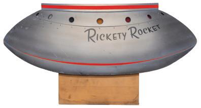 937. A “Beeper and His Guided Muscle” Rickety Rocket Prop. (Clampett, 1959) A wooden Rickety Rocket prop used in test footage for Bob Clampett’s unproduced series “Beeper and His Guided Muscle.” Measuring 14.5” x 39.75” and 0.5” thick and 21” x 39.75” x 0.75” with the wooden base, the ship displays in good condition with stains, scratches, scuffs, and wear. Due to size and weight, this item requires special shipping arrangements. Please inquire before bidding. $300 - $500
