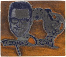 Printer’s Block. (Clampett, 1940s-60s) A large printer’s block engraved with Bugs Bunny and the text “Season’s Greetings.” This printer’s block was used to print the image in black and white, likely for Bob Clampett’s seasonal mailing. Measuring 4.5” x 5”, the printing block is in good condition with scratches, labeling tape, and wear from use. $100 - $200