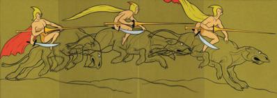 - Three fantastic cels created in the 1970s of Clampett’s John Carter of Mars project, and two cels of his “Three Dimensional Man” unproduced series.