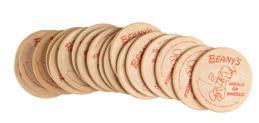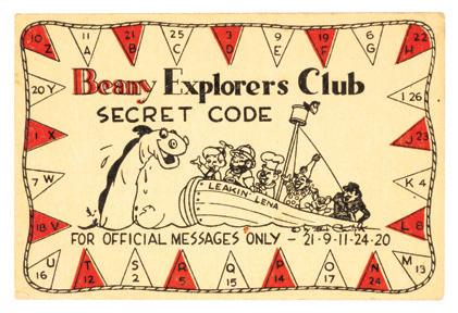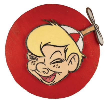 926. A Wooden Beany Sign from Clampett’s Home Bar. (Clampett, 1960) A custom wooden sign of Beany that hung on the front of Bob Clampett’s poolside bar at his home. This was one of many cut-outs of characters that he used to decorate his backyard. Measuring 16” in diameter and 0.25” thick, the wooden sign is in good condition light chips, paint cracks, and color fading from age. $300 - $500