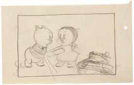 A pair of hand-inked original drawings, one of Mickey Mouse inscribed with “Carl Stalling,” one of Mickey, Horace Horsecollar, and Clarabelle Cow dated 1931, and a printed drawing of Iwerks with his creation Flip the Frog, inscribed by Iwerks to Stalling.