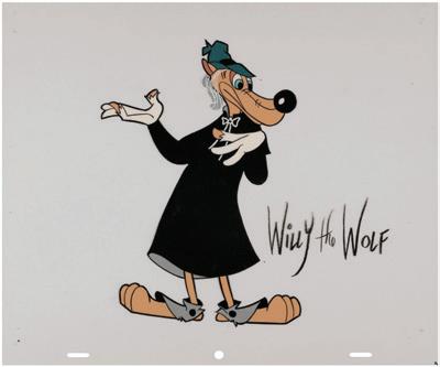 An original hand-painted presentation cel of Ima Hagg with a Bob Clampett copyright. Ima Hagg was a puppet character on the Buffalo Billy Show and this cel was most likely part of a pitch for an animated show. With an image size of 7.5” x 9” on a 10.5” x 12.5” cel, the art displays in very good condition with scratches, tape residue, spots of paint loss, and pinholes from display.