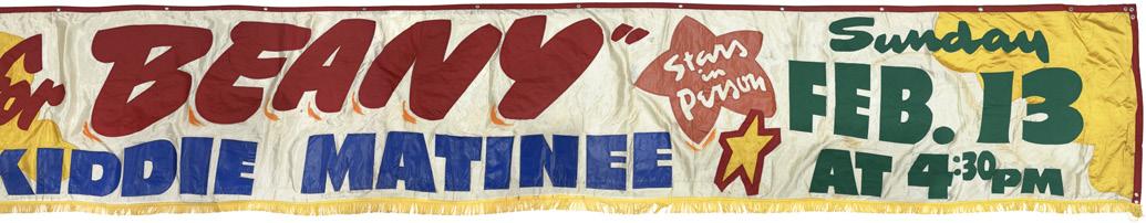 929. A Bob Clampett Beany and Cecil Logo Display. (Clampett, 1960s) A handmade wooden display of Bob Clampett’s logo featuring Beany and Cecil. Measuring 31” x 34.5” x 0.25” thick, the sign is in fair condition with edge wear, peeling, scratches, cracks, soiling, and light discoloration from age. Due to size and weight, this item requires special shipping arrangements. Please inquire before bidding. $300 - $500