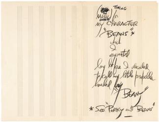 48. Sheet Music for Two Original Songs by Carl Stalling. (Stalling, 1962/1966) Sheet music for the original songs “We’ll Get Along” and “Maybe It’s All For The Best,” with words and music by Carl Stalling, composed after he retired from Warner Brothers. Although both songs are copyrighted, they appear to be unpublished. Also included is a two-page photocopy of a revised version of “To Winter” which has been signed on the reverse by Stalling in ink. Both hand-written in graphite and ink on 12.5” x 9.5” staff paper, the compositions are in fair to very good condition with light edge wear and tear, creases, and light discoloration from age. $200 - $400
